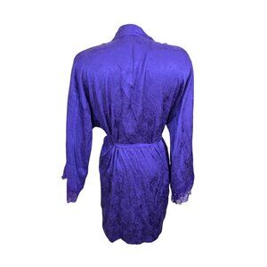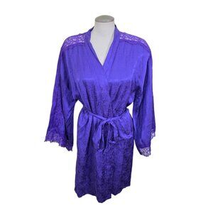 VICTORIAS SECRET Luxe Satin Jacquard Lace Inset Robe Size M L Royal Purple Belt