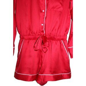 VICTORIA'S SECRET Satin Button-Front Romper with Rhinstones in Red (XS)