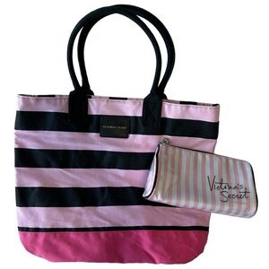 VICTORIA'S SECRET TOTE BAG & MAKEUP TOILETRY BAG 2-PIECE SET PINK AND BLACK