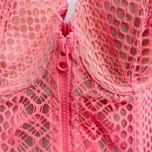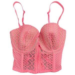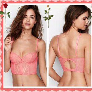 VICTORIAS SECRET Very Sexy After Dark Crochet Long Line 32DD Pink Coral Citrus