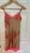VICTORIA’S SECRET nightgown chemise slip dress adjustable spaghetti straps with lace trim floral pattern pink beige size XS
