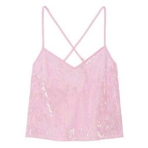 VICTORIA'S Secret Cami Velvet Velour Cross Over Cropped Camisole Sheen Pink Y2K