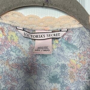 VICTORIA’S Secret Floral Blue & Pink Long open Robe Kimono M/L