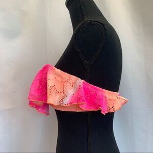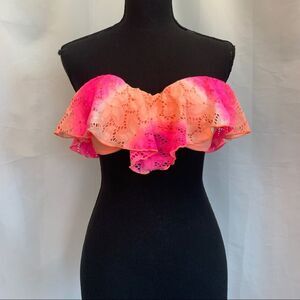Victoria's Secret neon orange pink ruffle frill lace bikini top Sz 36C/M/L/10
