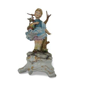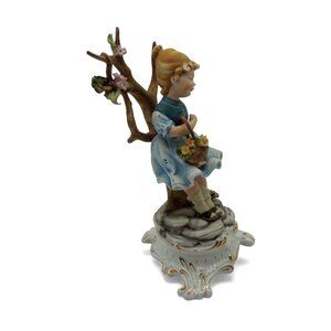 VIERTASCA Capodimonte Girl Figurine and Tree Floral Decor Italy Vintage