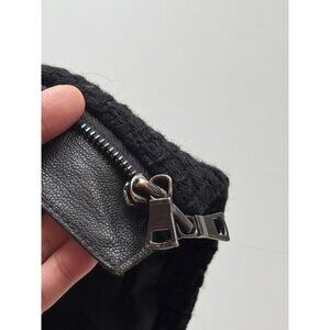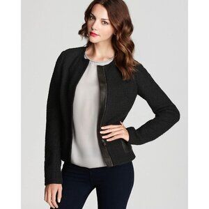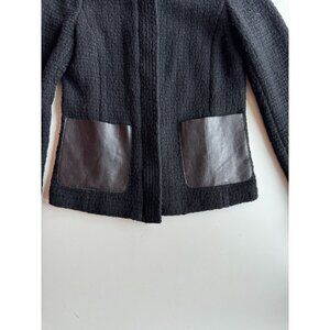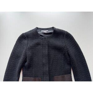 VINCE Black Wool Boucle Knit Lamb Leather Minimalist Collarless Jacket, Size 2