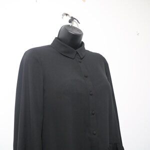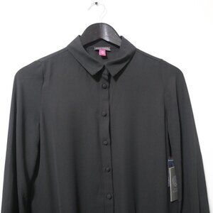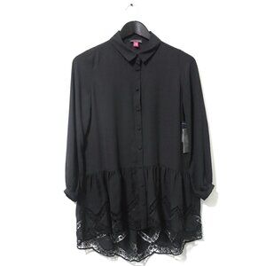VINCE CAMUTO Holiday Peplum Button Down Stencil Blouse in Rich Black