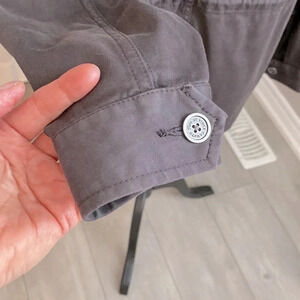 Buttoned jacket with drawstring. 4 front pockets with silver buttons. The Colour is like a washed-out grey/blue. Excellent newer condition.