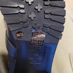 VINCE CAMUTO (Italian Brand), great quality leather boots, new, never worn. Smooth black leather (the shoe and front part of the boot), with a great design, a little above knee.