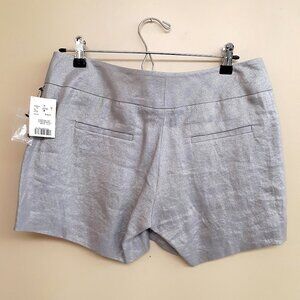 Dazzling metallic shorts from luxury designer brand Vince Camuto. Perfect for a fabulous poolside cocktail party. 100% linen. Medium gray with silver weave (color 071 "Vapor"). Wide waist band with double hook and button closure and front zipper. 4 functional pockets, 2 front pockets and 2 back pockets (still sewn shut). NWT New with tags. Perfect condition. No flaws. Size: US 4 Style # 9125349 Questions & offers welcome!