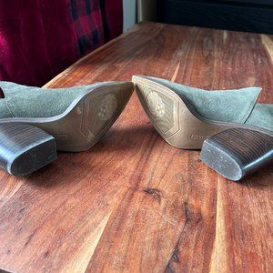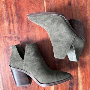 VINCE CAMUTO | Olive Green Gigietta Suede Ankle Heeled Boot | 7.5