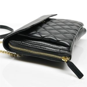 Slip pocket at exterior back (strap can be tucked away in this pocket and purse can be used as a clutch bag)