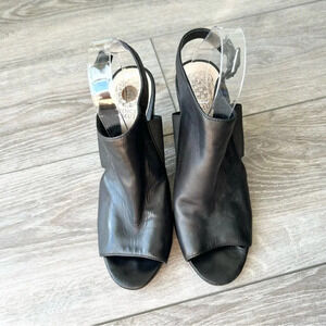 VINCE CAMUTO Vamelia Black Genuine Leather Open Toe Booties