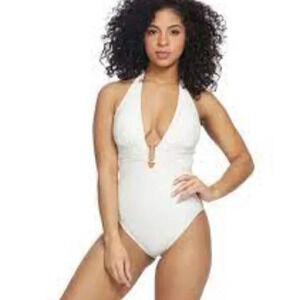 Look gorgeous poolside in the Vince Camuto Pacific Wave Plunging Texture One Piece Swimsuit.