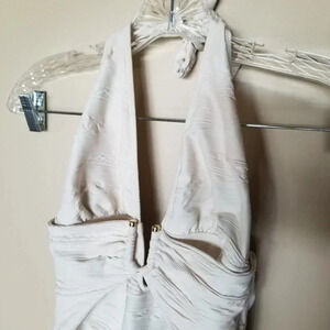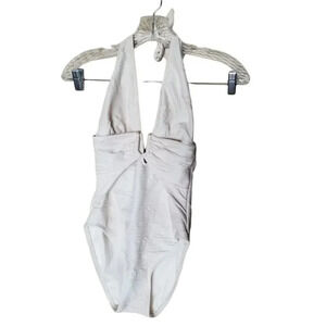 VINCE Camuto Pacific Wave Plunging Texture One Piece Swimsuit Sand