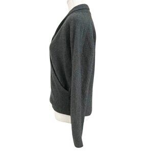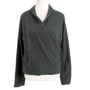 VINCE. CHARCOAL GREY BOILED CASHMERE FRONT WRAP SURPLICE SWEATER 2019PS1, Our ballet-inspired pullover features a wrap front for a slim fit in sensational boiled cashmere. It is made in a super soft fuzzy cahsmere knitting with a drape surplice front / faux wrap style which is flattering for the chest with a plunging v-neckline - long sleeves- regular in length - unlined- breathable - fall and winter favorite for a chic minimalist classic yet contemporary top with black dress pants or go with a dark wash jeans for a more casual fit.