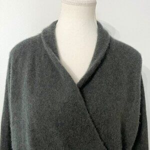 VINCE DARK GREEN BOILED CASHMERE FRONT WRAP SWEATER PULLOVER - S