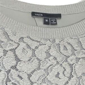 Vince top in chiffon with ribbed trim and tonal lace overlay on front.