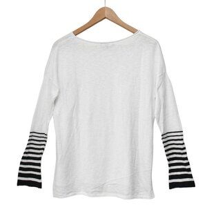 VINCE Long Sleeve Shirt 100% Cotton Top Stripe Arms Scoop Neck White Black M