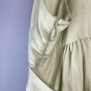 VINCE NWT Bow Pleated Sleeveless Midi Dress Sage Green Crinkle Tencel/Nylon S