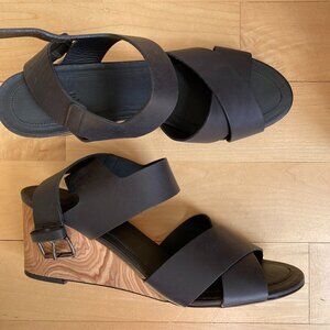 VINCE New Black "Gwyn" Leather Wedge 10 Slingback