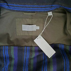 VINCE Olive Green Black Mixed Media Hooded Coat