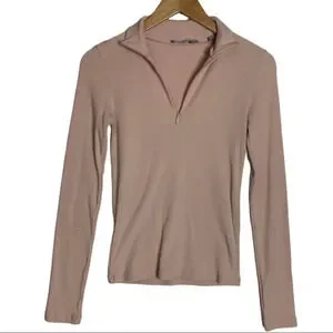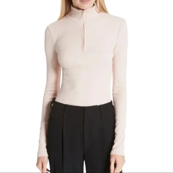 VINCE Ribbed Half-zip Pullover In Desert Rose Size Small