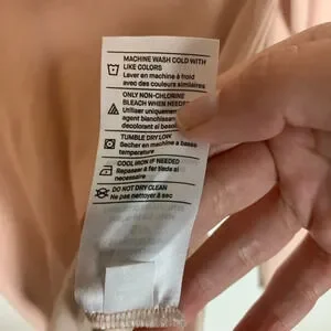 In gently used preowned condition. There is some sticker residue on the brand tag as well as very light blue dye transfer on the back. Very hard to see ( see last 3 pictures) Haven’t tried to stain treat. Please see pictures for approximate measurements, care and fabric details and examples of condition. Please reach out if you have any questions.