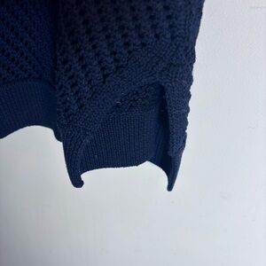 VINCE Sz M Open Knit Vest Tunic Hem Slit Scoop Neck Long Line No Fabricc Tag in Navy. Lovely and stylish. Perfect for layering.