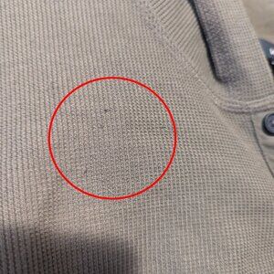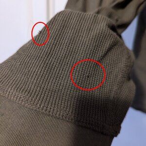 Hoodie is in fair pre-owned condition with multiple pulled threads.