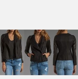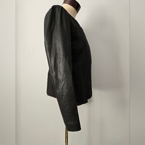 VINCE Women's Linen and Leather Black Jacket Lined in Silk. Size 6