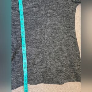 Gorgeous midweight grey wool blazer. The length of it also serves well to double as a jacket. Deep V neck. Two front pockets. Fully lined in a silky black.