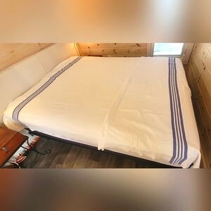 Classic white and blue stripe thick cotton top sheet.