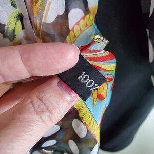 Color: black and white polka dots, with a multi-color floral pattern on ends (note: color is more vibrant than it is appearing on the photos; really pretty colors as shown on the material tag photos)