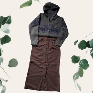VINTAGE 100% WOOL KAKI & NAVY Zipper Hoodie Knit