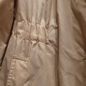 Full fit, outdoor, utility, hooded (removable), wind & rain proof, lightweight, belted, buttoned cuffs (adjustable), packable trench coat in beige.