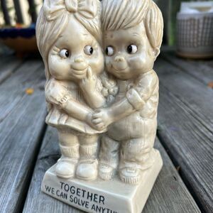 Bring a playful charm to your space with this adorable cream figurine. Featuring a delightful duo, it's a perfect addition to any decor. The phrase 'Together We Can Solve Anything' adds a heartwarming touch.
