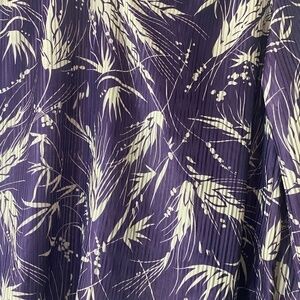 Excellent condition vintage ladies purple and tan ladies blouse. Purple background with tan wheat pattern.
