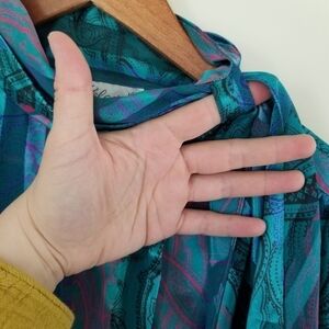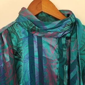 Vintage 1970s Paisley Church Grandma Polyester Scarf Blouse Size 18