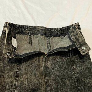 VINTAGE 1980s DEADSTOCK UFO Sport Black Denim Jean Mini Skirt Acid Wash Cotton