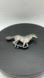 A stunning, detailed figural brooch depicting a powerful, galloping horse in motion. The cast pewter has a lovely, soft shine and substantial feel.