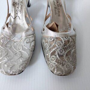 Vintage 60s Silver Slingback Shoes - Handmade by Sagamore