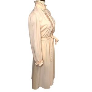 VINTAGE 70s Pink Prairie Dress Cottage Secretary Ruffle Neck Long Sleeves S/M