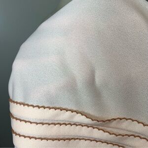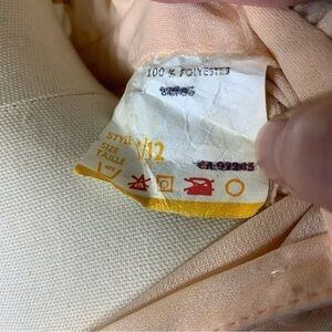 in excellent condition, super cute feminin peachy pink and brown details, Canadian union tag and the style make me believe is from the 70's. Ruffles details on neck and cuffs, puff sleeves, back key hole with 2 pink pearl button, elastic waist with belt. semi sheer. Please see pictures.