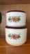 Includes 2 nesting canisters with lids. The larger canister is approximately 5" tall with a 7" diameter at rim. The smaller canister is approximately 4