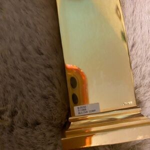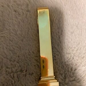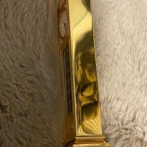 This is a beautiful Bulova Canterbury, number B0550 miniature (5" X 1 9/16" X 1 1/8") collectible bright brass and glass rendition of a vintage Bulova grandfather clock.