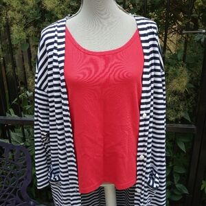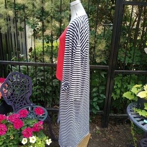 Gorgeous nautical theme duster cardigan and tank top by J.G. Hook. There are a couple of faint stains on the hem. Theyre not at all noticible when its on. 100% cotton.
