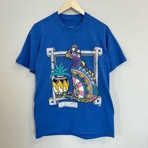 VINTAGE 80s New Orleans Cinco De Mayo Tee Blue Single Stitch Tees Unlimited Med