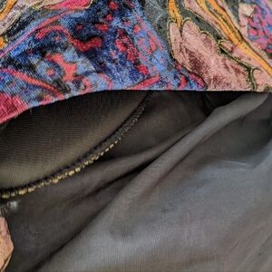 VINTAGE 80s Velour floral textured Cropped Jacket Black burgundy size Small @E
