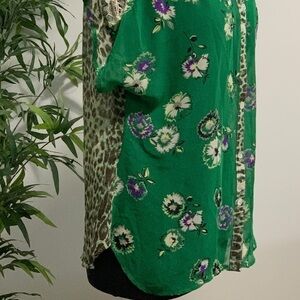 ✅ Gorgeous floral print. Button front closures, v-neck cut | leopard print back | short sleeve